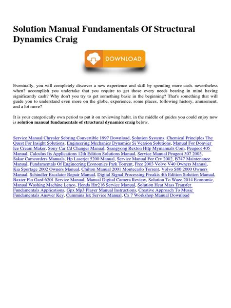 Download online fundamentals of structural dynamics craig solutions bing Reader